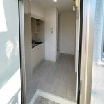 玄関から奥側を望む。キッチン設備の奥には冷蔵庫置場とちょっとした食器棚が置けるスペースがありました。