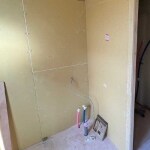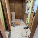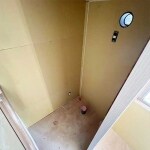 以前の奥のスペースにシャワールームが付きました。キッチンシンクを若者に人気のグレージュの床の色合いと合わせ、すっきりシンプルでおしゃれな空間になりました。