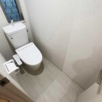 まだまだ都内では、ワンルームマンションや1Kマンションで、3点ユニットバスを採用している賃貸物件も多いですが、キッチンが狭くてもトイレ・お風呂別が人気になっています。202号室は、元々あったキッチン奥の3点ユニットバスを洗濯機置場・シャワールーム・トイレに独立させ、トイレを奥に配置しました。水廻りを一列に配置しすっきりとした生活導線が出来ました。採用した商品は、LIXILアメージュリトイレタンク手洗い付きです。地球環境に配慮した、強力洗浄の超節水かつスーパー節電仕様です。アクアセラミックの衛生陶器フチなし形状で頑固な水垢や汚物も落とせるお掃除がラクになるおすすめ商品です。お尻ターボ洗浄・Wパワー脱臭とターボ脱臭で、トイレ空間が心地よく落着ける場所になりました。 トイレはホッとできる場所を願う若者に向け、自信を持ってお勧めできる物件になりました。