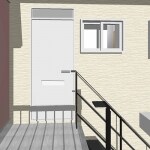 階段手摺、建物外壁も振り替えることになりましたので、玄関ドアも新しく交換になりました。 これまでは呼出はチャイム用押しボタンでした。