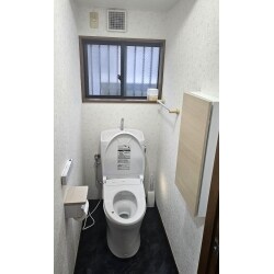 トイレと一緒に紙巻器とキャビネットも交換いたしました。内装もクロスとクッションフロアを張り替え全体が明るくなりました。陶器なのでお手入れが楽になります。