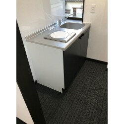 天板が錆びにくいステンレスのミニキッチン。水栓金物も交換。