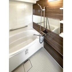 浴室の床には、溝が広く浅いのでスポンジが奥まで届く床をご提案。お手入れしやすくヒヤッとしない床は毎日のお風呂タイムも快適に。 収納棚は取り外しができるタイプにすることで壁も裏側もサッときれいに出来ます。 弊社のショールームでワイドミラーを見て気に入っていただき、採用したいとのご要望を頂きましたので 特殊コーティングで水垢が付きにくく汚れが簡単に取れる鏡をご提案いたしました。 壁には汚れにくく汚れが落ちやすい、鏡のような艶が美しいパネルを、ウォールナットとシャインウッドホワイトの二色でお選びいただきました。流水を思わせるとっても美しい木目柄とワイドミラーで、まるで高級ホテルの様な浴室に仕上がりました。 洗面化粧台は3面鏡収納にすることで、見た目もすっきり!水垢が付きにくい水栓をご提案。 広々洗面ボウルで使い勝手も良くなり、機能性抜群の洗面室になりました。 トイレは手洗いが無くなり、水栓部分のお手入れが不要に。便器本体も継ぎ目が少なくフチが無いので汚れが溜まらず汚れてもサッと落とせます。 収納アップで見た目もスッキリ!お掃除しやすくキレイ長持ち。便利でお洒落な水まわりになりました。