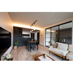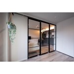 LDKと隣の洋室の間仕切り戸はガラス戸で解放感を。 まわりの建具のブラックと合わせてモダンなお部屋に。