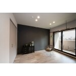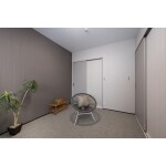 リビング隣の和室は洋室にリフォームし、洗濯物を干したり観葉植物を置いたり。 ヨガも楽しめます。 濃いグレーのアクセントクロスに合わせて建具もグレーにしました。
