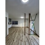 リビングを広々と使えるようキッチン前の間仕切り、リビング側の和室壁を解体しました。 和室と洋室の間の襖を貼り替えし、大容量のクローゼットを作成しました。 また、リビング中央にデザイン性のある筋交いを施工したことで、おしゃれな雰囲気のリビングになりました。
