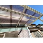ポリカ屋根を全て張替えし、タイルデッキを施工、青砂利を敷いたことで、おしゃれなバルコニーになりました。