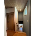 2階廊下 壁紙はホワイト、フローリング・天井をブラウンのものに張替えし、綺麗な廊下になりました。