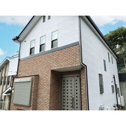 レンガタイルが引き立つライトグレーでの外壁塗装