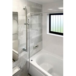 少ないガス量で効率よくお湯を沸かす省エネ性の高い給湯器「エコジョーズ」をお取付け。 2台の給湯器を1台にすることでスペースも効率も良くなりました。 浴室は保温性の高い魔法びん浴槽のTOTO・サザナをご提案。 お湯の温度が下がりにくいので追い炊き回数も減り、いつでもあたたか。 衣類や浴室もカラッと乾燥させる浴室暖房乾燥機カワックもお取付け。湿気対策ができ、カビの心配も無くなりました! 洗面化粧台はTOTO・サクアをご提案。広く深い洗面ボウルがとっても使いやすく、3面鏡収納で収納力も格段にアップ。 色や柄、クロスなどの内装も含めてショールームで実際に見て頂いて気に入ったデザインをお選びいただきました。 エコで快適!アクセントのグレーのモダンな石目柄がまるでカフェのような清潔感溢れるオシャレな空間に仕上がりました。