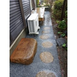 細かい砂利が敷いてある部分は雑草が生えて落葉も溜まり、掃除が大変でした。