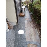 洗い出し仕上げの施工に伴いコンクリート製の桝を塩ビ製の桝に交換しています。塩ビ製の桝は木の根っこなどが入り込む隙間がありませんので安心です。