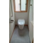 便器のふちを丸ごとなくしたフチレス形状、さっとひと拭きお掃除ラクラクのタンクレストイレに交換しました。 従来の衛生陶器ではできなかったガンコな水垢も汚れもどちらも落とせるお掃除ラクラクな便器です。 強力な水流が便器鉢内のすみずみまでまわり、少ない水でしっかり汚れを洗い流します。 プラズマクラスターイオンが便器鉢内をまるごと除菌、消臭。さらに着座すると消臭が開始し強力ににおいを吸引します。 超節水タイプで、もともと設置されていた大8L便器と比べ、約49%も節水できます。 スマートフォンリモコン対応で、洗浄位置や水量の強弱など、シャワートイレをお好みの使い心地に設定できます。 使わないときは自動的に便座の温度と湯温を下げて節電します。 クッションフロアの交換も行い、明るくすっきりとした広々空間になりました。