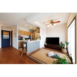 とっても多趣味の施主様ご家族。 各々の「好き」を上手に組みこめるようにしっかりヒアリングを行い、 趣味を最大限活かせるように家具のサイズや設置場所も細かく調整、ご提案を致しました。 水まわりは白を基調として、清潔感溢れる空間へ。 リビングは既存和室を取り込み、ラグを敷くことで和のテイストを残し、 南側のベランダから差し込むあたたかな光を浴びながらゆったり寛げる団らんスペースに。 キッチンは壁や柱を出来る限り取り払い、開放的な対面キッチンへ。 施主様の趣味のひとつの観葉植物が引き立つ様に突板のフローリングをご提案。 施主様チョイスの家具のナチュラルテイストと青々と茂る植物の一体感が爽やかでとてもオシャレ。 趣味とライフスタイルとデザインが見事に融合した、好きを愉しめる癒しの住まいになりました。