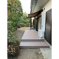 既設の木製デッキを全て撤去して、人工木ウッドデッキを設置しました。 エコ素材で作られているため、湿気で腐ったりシロアリの食害の心配もありません。 汚れは水洗いで落とせて、傷はサンドペーパーで簡単に補修できます。 安心して利用できるウッドデッキになりました。