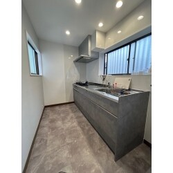 白を基調といたしました内装にブラウンベースのクッションフロア、キッチン本体のお色味で空間にメリハリができ、モダンスタイルでかっこいい台所空間になりました。ダウンライトの個数を増やすことでキッチンがより明るくなりました。