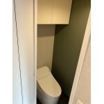 「きれい除菌水」が、ノズルを自動で洗浄。ノズルのきれいが長持ちします。 便器の中を少ない水で効率よく洗うトルネード洗浄です。 クロスとクッションフロアも合わせて交換しました。壁の一面を緑色のアクセントクロスにし、床のデザインと合わせることでおしゃれで居心地のいいトイレになりました。
