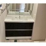 洗面台とボウルに段差があるタイプでした。 クロスとクッションフロアもあわせて交換したいとのことでした。