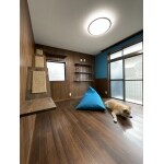 10帖と1帖の押入スペースで11帖の空間が有りましたので、4帖のウォークインクローゼットと7帖の寝室に分けて寝室にはキャットウォークを設置。2台のベットを置いてもゆとりの有る空間で、愛犬ものんびりできる様ご提案させて頂きました。