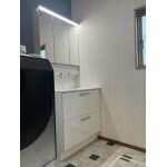 洗面化粧台を拝見した際、経年劣化が見受けられた為、ご一緒に収納機能が豊富な洗面化粧台に交換しました。