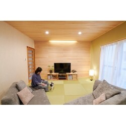 そこでリビングそのものの広さはそのままに、和のテイストを入れるプランを作成。天井にはこだわりのヒノキの羽目板を使用しました。 間接照明をつける際に、天井高の関係で間口いっぱいの取り付けが出来ないという想定外の事態が起こりましたが、代わりのプランをご提案し、M様にご納得頂きながら和室を完成させました。