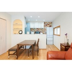 「テレビを壁掛けにしたい」というご希望には、テレビの壁掛けには壁を厚くする必要があり、壁の厚さを利用してニッチ収納を作るご提案をしました。 奥様から「コンロ前の壁にもニッチ収納を作りたい」とのお話があり、奥様が描いてくださったイメージ図を元に造りました。 収納を色々な形で造ったことで、置き家具を設置する必要がなくなり、リビング・ダイニングを広く使えるように。「リビング・ダイニングの居心地がとても良くなりました。ダイニングテーブルにコンセントを付けてもらえたことで、便利になったのも嬉しい」と言って頂けました。