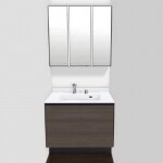 洗面化粧台のボール楕円形で、混合水栓が付いていました。天井高の大きめサイズの三面鏡になっていました。