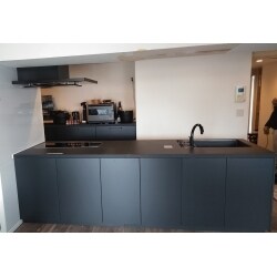 収納たっぷりお掃除楽々、使いやすいキッチンに交換しました。 カウンターは表面硬度が高いので、傷に強く目立ちにくい仕様です。はっ水・はつ油成分を配合し、お掃除らくらくです。 シンクは傷や汚れに強い素材を使用。カウンターとの継ぎ目や排水口にスキマのない設計でふきやすく汚れがたまりにくい形状です。 レンジフードは「ラクウォッシュプレート」でほとんどの油を捕集し、運転終了後ファンが自動で高速回転、ファンに付着した油を吹き飛ばします。 10年間使用してもファンの汚れはいままでの10分の1の1年分に。 横並びで調理がスムーズなIHヒーターは、保温スペースを確保できるので、でき上がりを揃えられてアツアツ料理を食卓へ。 手前にお皿が置けるので、スムーズに盛り付けができ、床への油の飛散も少なくなります。 一目ですぐ見つかる、ラクに取り出せる、スムーズにしまえるがコンセプトのスタンドイン収納は、適材適所を考えて、高さもムダなくフル活用できます。 手元にコンセントがあるので、調理家電がカウンター上でスムーズに使えます。 スタイリッシュでおしゃれな高級感のあるキッチンになりました。