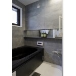 石目と黒い浴槽のスタイリッシュな浴室を設置。内窓も設置しました。
