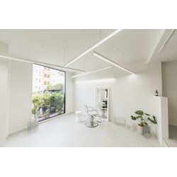 ミラーや椅子を増やしたりできるよう、たっぷりスペースを確保いたしました。既設の大きな窓を活かしつつ開放的で明るい空間が出来上がっております。プライベート感満載で素敵な時間を過ごせそうですね。