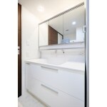 ひろびろ設計の洗面ボウルや左右どちらからでも開閉できる便利なスウィング三面鏡、お掃除ラクラク水栓を採用。収納キャビネットはサイズの異なる引き出しで効率よく収納できます。