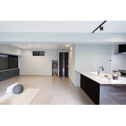 LDKはご要望通り、間仕切りを撤去して約22畳の大空間をご提案しました。 お料理中、今よりも更にコミュニケーションを取って頂けるようにリビング側に向けた対面型をご提案。2型のキッチンで作業スペースも広く確保して一緒にお料理を楽しんで頂ける空間にしました。 寝室はベッドを置くだけで精一杯の広さでしたが、押入を取り込む形で面積を広げ、物干しスペースを確保しました。 随所でアクセントのクロスをご採用頂き、お部屋毎で違ったテイストの空間となっております。 完成後、お客様から「思っていたよりも広くなって、毎日の生活が楽しみ!」とお言葉を頂きました。