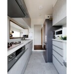 グレーとホワイトで落ち着きある高級感があふれるオシャレなキッチンへ