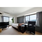 アクセントのグレーの壁で部屋がぐっとシックに。安らぎの空間になりました。