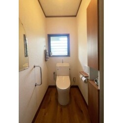 ご実家を受け継がれた施主様。老朽化が気になる部分をリフォームしデザインも一新したいとリフォームのご相談を頂きました。 既存のトイレと同じTOTO製品の”ピュアレストQR”に決定。ウォシュレットは袖リモコンから壁リモコンへの変更で操作しやすくなり、リモコン洗浄機能も付いたことからスムーズに洗浄できるようになりました。 紙巻き器は棚付きの物を選択。スマートフォンなど小物を置くことができ便利になりました。 柄のないシンプルなクロスがお好きな施主様。施工前と印象が変わるように床材や小物で色を取り入れることを提案しました。 収納・紙巻き器をクリエラスクで統一。クッションフロアも同系色の木目調を選び、温かみのあるオシャレなトイレ空間に仕上がりました。