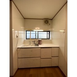 ビルトイン食洗機に変わりましたことでカウンタースペースにゆとりができました。 クリスタル調のカウンターは非常に丈夫な素材でできておりますのでキズに強く、簡単な拭き掃除などのお手入れのみできれいな状態の維持が可能でございます。