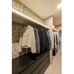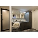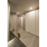 3LDKから広々とした2LDKプラス、ウォークスルークローゼットへ間取りを変更。リビングとウォークスルークローゼットの間仕切り壁には、贅沢に名古屋モザイクのタイルを一面貼りラグジュアリーな空間に。マットブラックのドアが空間を引き締めます。