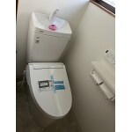トイレはもちろん節水型になっています。 床は段差をなくしクッションフロアを貼りました。 壁も木材からクロスにしたので、手入れもしやすくなっています