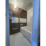 532.セブストーン柄のアクセントパネルで温かみある浴室