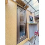 網戸が一体型の採風タイプの勝手口に取替え。ガラス面が上下し、ドアを閉めたまま、鍵も施錠したままで換気が可能になりました。防犯面でも突然のお天気でも安心です!!