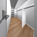 ウォークインクローゼットを2部屋共有の収納付き通路にしたいと思います。このクローゼットが丁度部屋の真ん中で両方向に開く引き込み戸が設置されており、洋服掛けも真ん中で仕切られているので、扉をそのままそれぞれの部屋の入口扉にしてしまおうと思います。ウォークインとしてのゆとりで設けられていた手前の空きスペースを通路として用いるように考えています。 普段は通路や洋服が見えないように新たにドアを設置して欲しいです。 イメージが分かりやすいようにパース図などで施工イメージや問題になりそうな点、具体的なご提案などいただけたら嬉しいです。