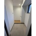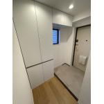 上質な白とミラー効果で叶える、明るくおしゃれなエントランス