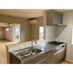 壁付けのため、独立した空間という印象で、収納も開き戸タイプ、上の収納は位置が高すぎて、頻繁に物の出し入れは出来ず、機能的とは言えないキッチンでした。