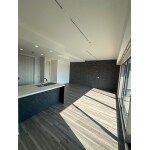リフォーム後、奥はウォークインクローゼットとなり、広々としたリビングに。 壁面にはエコカラットのルドラNXを施工し、グレーを基調としたモダンな空間になりました。