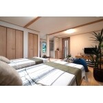 区切らずに一部屋として使用し、くつろげる寝室兼リビングのご提案をさせていただきました。 無垢材とクリナップ「BGA」を採用し、フローリング、エアコン・ロスナイ設置、BS・地デジ設置を致しました。