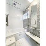 590.石目柄のアクセントパネルが温かみと高級感溢れる浴室