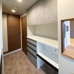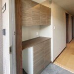 今回ご紹介した玄関収納のLIXILラシッサDのウォルナット色は、どんな建具や床・壁材にも合わせやすい色合いになっています。人感センサ付きダウンライトを設置して、暗さによって自動で照明が点灯するようにしました。玄関収納には、吊戸棚を追加して収納量を増やしました。床のフロアタイルも明るくしました。今後の生活に合わせ、使いやすい玄関になりました。