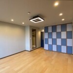 こちら側の間取りの変更はありませんでしたが、明るい温かみのあるフローリングに張り替えられ、上質で落ち着いたスクエア照明と、ダウンライトでお部屋の印象を一気にホテルライクな空間に替えることが出来ました。