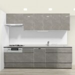 お客様が普段お使いのキッチン家電製品やキッチンのご使用状況などをヒアリングしながら、使い勝手の良さと飽きのこないデザイン、また、全体のお部屋のテイストや雰囲気を壊さないようにご提案させていただきました。本体高さはお客様のご使用高さを測り85cmのものを選ばせていただきました。食洗器は深型タイプの容量が大きいものを採用し、収納部も使いやすさが随所に工夫されたスライドストッカー引き出しタイプです。腰を曲げずに奥のものまで楽に出し入れすることが出来ます。キッチンパネルもマグネットをご利用いただけるタイプで使いやすくアレンジでき、汚れもさっとひと拭きです。落ち着いたお洒落な色合いのグレージュスタッコ模様を選ばれました。