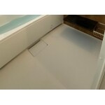 床のスミには目地がないので、汚れがたまりにくく、落としやすいのでお掃除が楽々です。スポンジを滑らせやすい同一方向のグリッドパターンで、床表面の凹凸は乾きやすく滑りにくいです。排水口まで一体で成型されており、汚れが排水口周囲にたまりにくい形状です。床の端が立ち上がった構造で、防水性にも優れています。